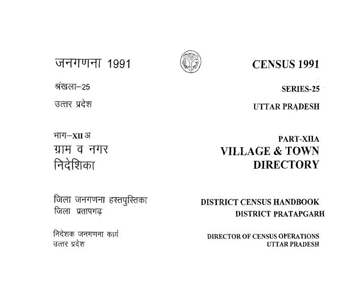 District Census Handbook, Pratapgarh, Part XII-A, Series-25, Uttar Pradesh - Census 1991