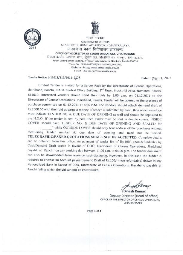 Tender for Server Rack (DCO - Jharkhand)
