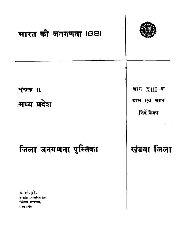 District Census Handbook, East-Nimar, Part XIII-A, Series-11 - Census 1981