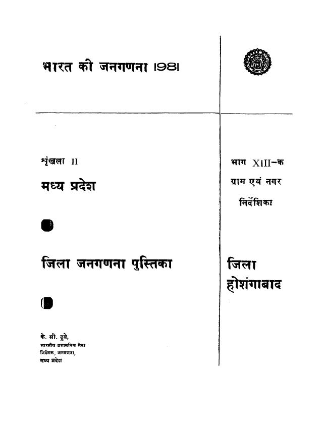 District Census Handbook, Hoshangabad, Part XIII-A, Series-11 - Census 1981