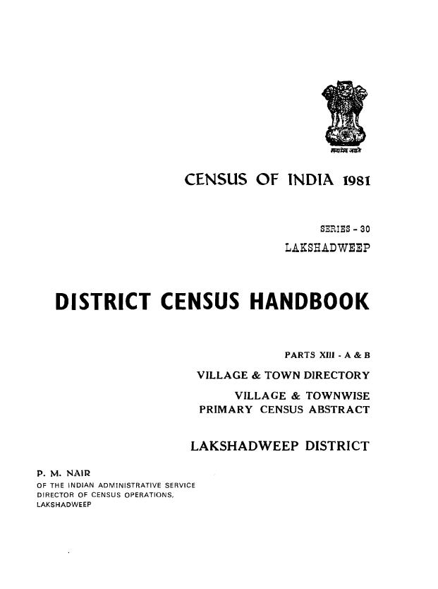 District Census Handbook, Lakshadweep, Part XIII A & B, Series-30 - Census 1981