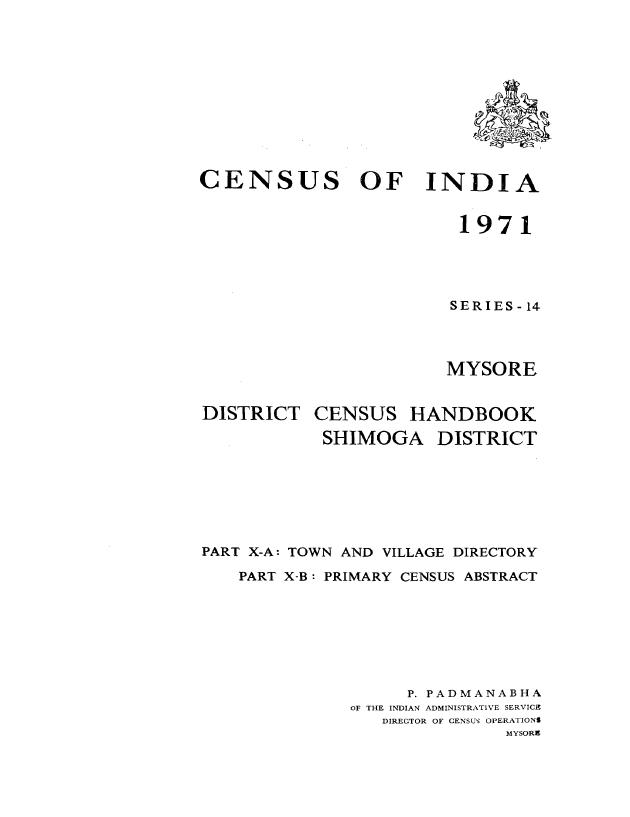 District Census Handbook, Shimoga, Part X-A, B, Series-14 - Census 1971