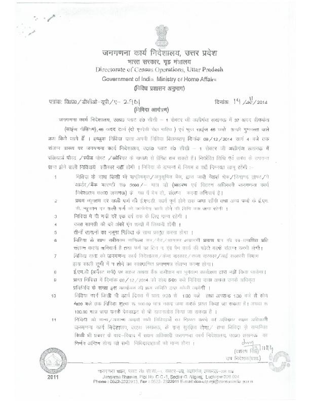 Tender for Hiring Vehicle for NPR Work [DCO - Bihar].
