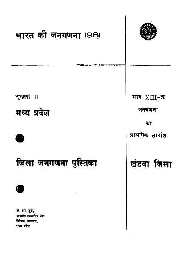 District Census Handbook, East-Nimar, Part XIII-B, Series-11 - Census 1981