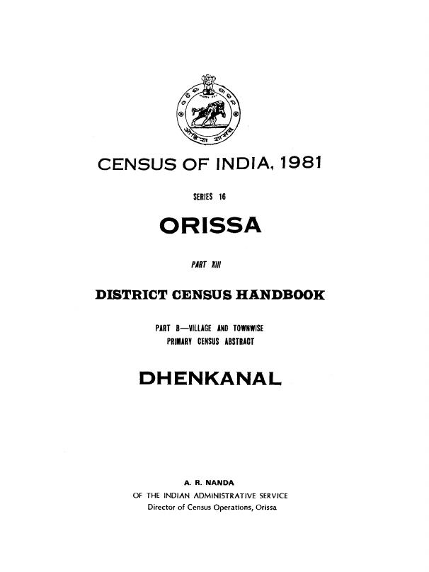 District Census Handbook, Dhenkanal, Part-B, Series-16, Orissa - Census 1981