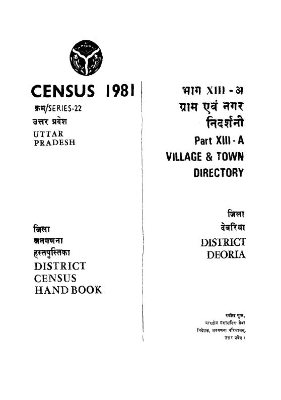 District Census Handbook, Deoria, Part XIII-A, Series-22, Uttar Pradesh - Census 1981
