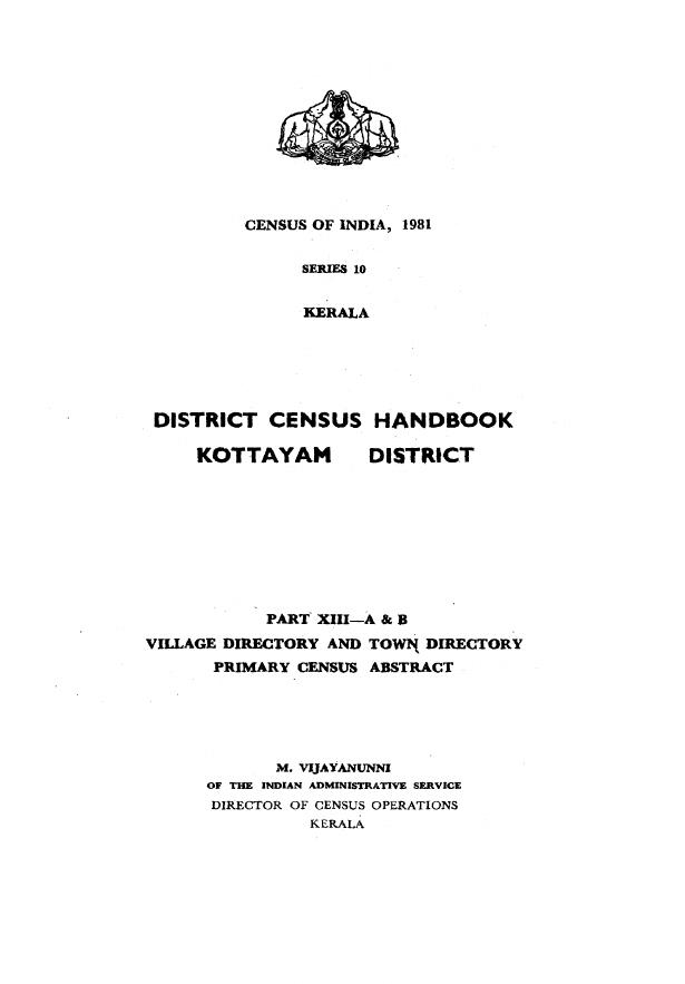 District Census Handbook, Kottayam, Part XIII-A & B, Series-10 - Census 1981