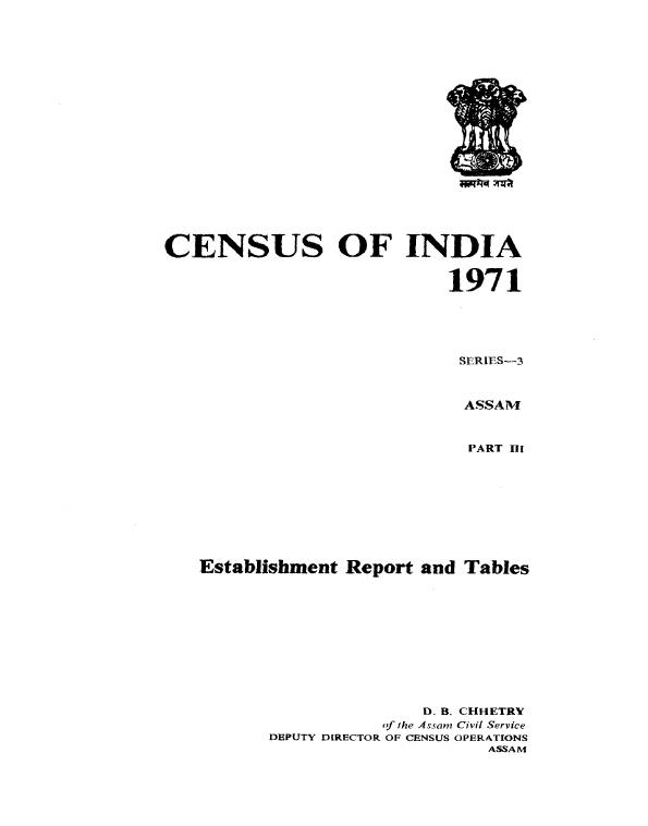 Establishment Report and Tables, Part III, Series-3, Assam - Census 1971