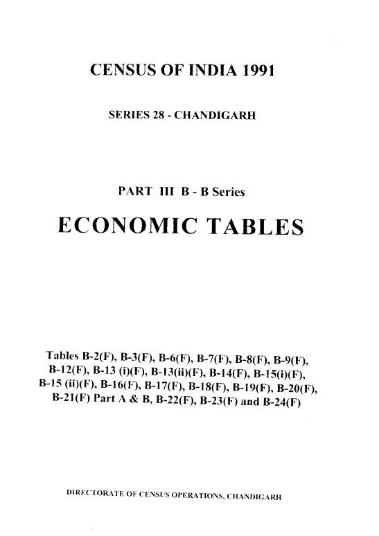 Economic Tables, Part III B-B Series, Series-28, Chandigarh - Census 1981