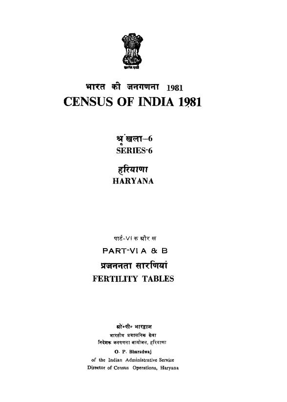 Fertility Tables, Part-VI A & B, Series-6, Haryana - Census 1981