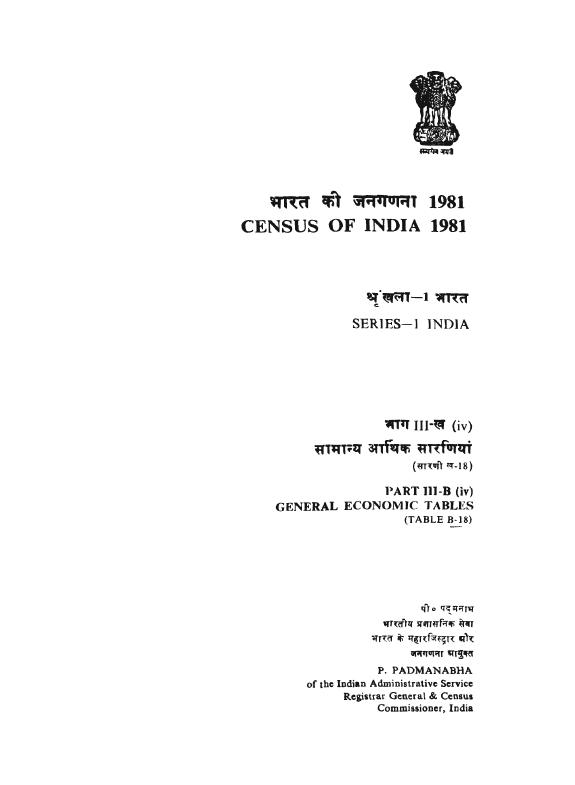 General Economic Tables, Part III-B (iv), Series-1 India - Census 1981
