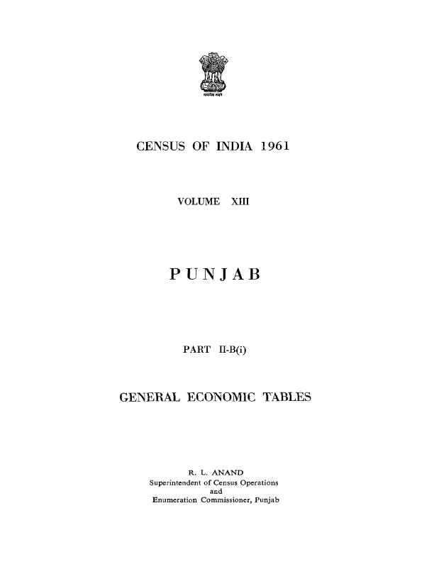 General Economic Tables, Part II-B(i), Vol-XIII, Punjab - Census 1961