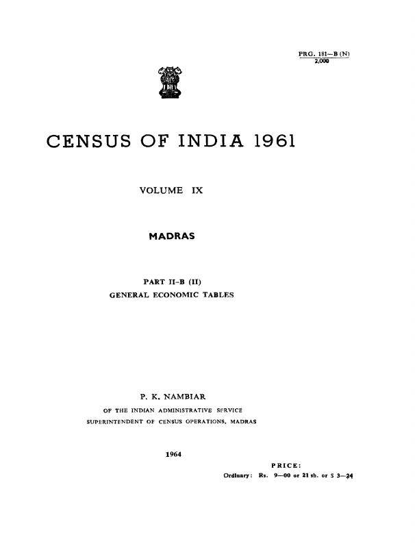 General Economic Tables, Part II-B (II), Vol-IX - Census 1961