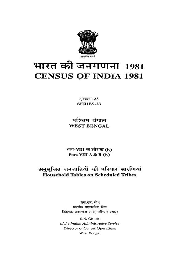 Household Tables on Scheduled Tribes, Part-VIII A & B, Series-23, West Bengal - Census 1981