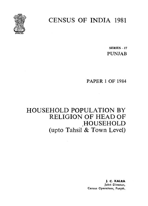 Household Population by Religion of Head of Household , Series-17, Punjab - Census 1981