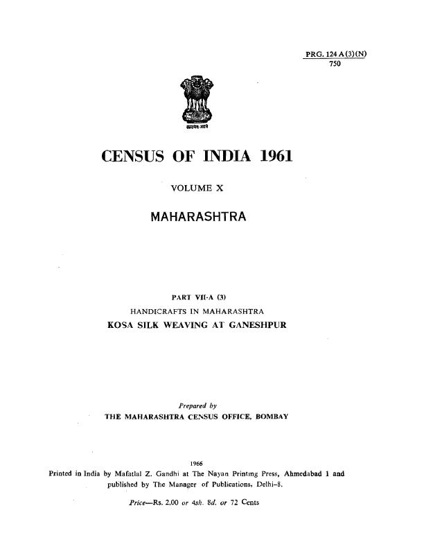 Handicrafts in Maharashtra Kosa Silk Weaving at Ganeshpur, Part VII-A (3), Vol-X - Census 1961