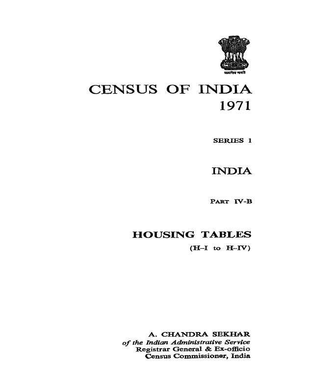 Housing Tables, Series 1, Part IV-B, India - Census 1971