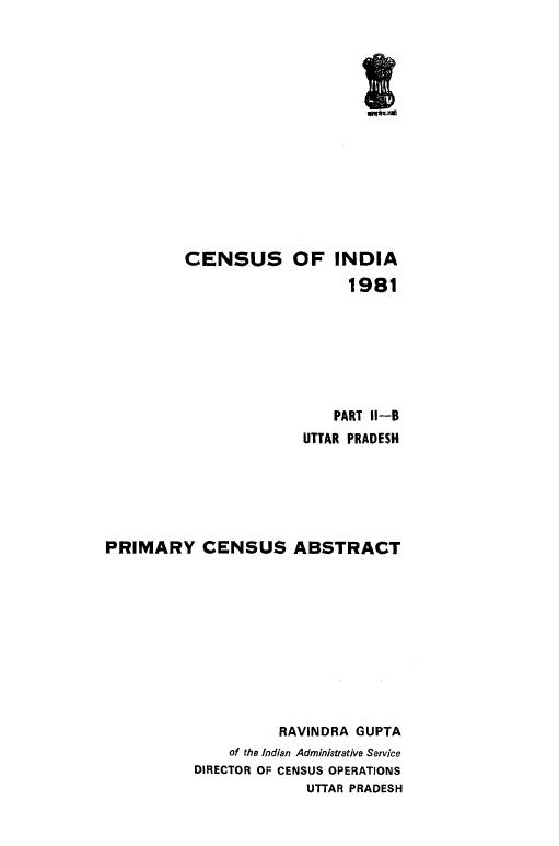Primary Census Abstract, Part II B, Series-22, Uttar Pradesh - Census 1981