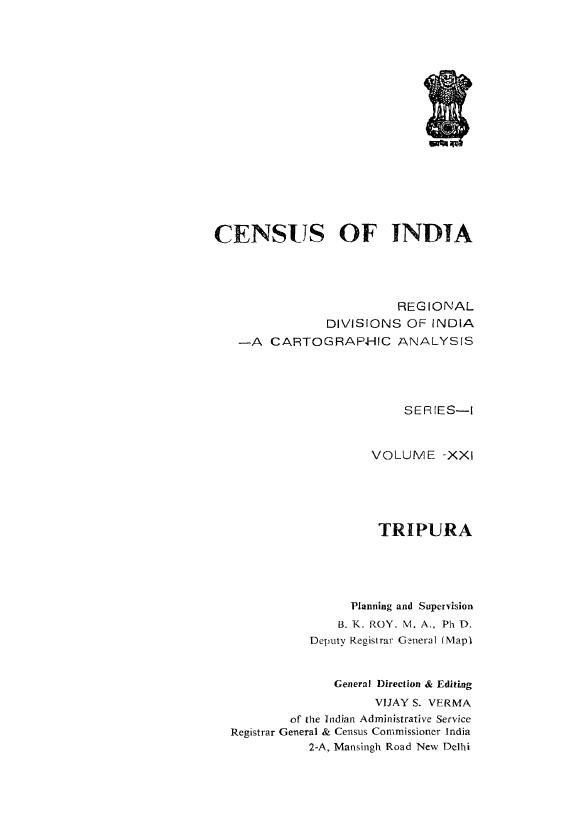 Regional Divisions of India A Cartographic Analysis, Vol-XXI, Series-1, Tripura - Census 1981