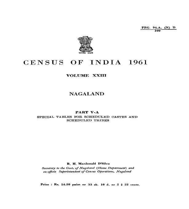 Special Tables for Scheduled Castes and Scheduled Tribes, Part V-A, Vol-XXIII, Nagaland - Census 1961