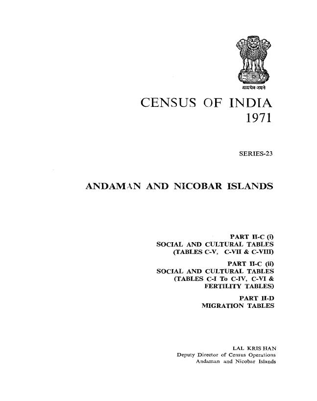 Social and Cultural Tables, Fertility Tables, Migration Tables, Part II-C,(i) Part II-C (II), Part II-D. Series-23 - Census 1971