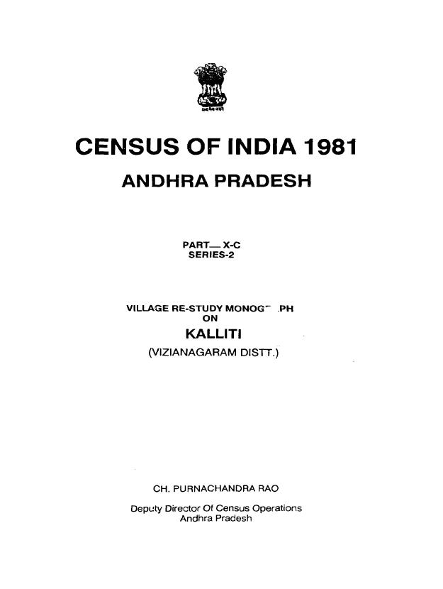Survey Report on Village Kalliti, Vizianagaram, Part X-C, Series-2 - Census 1981