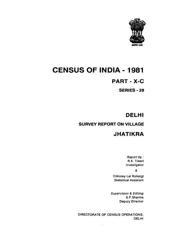 Survey Report on Village Jhatikra, Part X-C, Series-28, Delhi - Census 1981