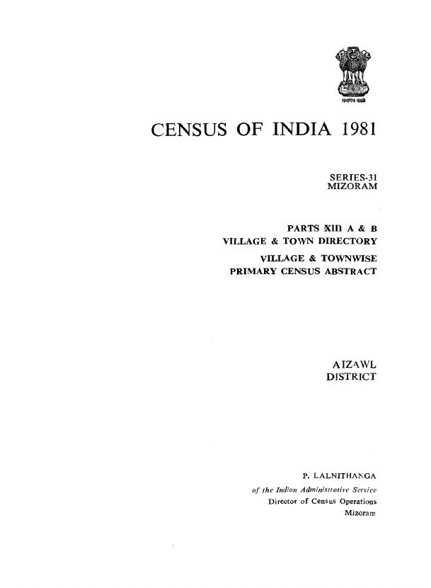 District Census Handbook, Aizawl, Part XIII-A & B, Series-31, Mizoram - Census 1981