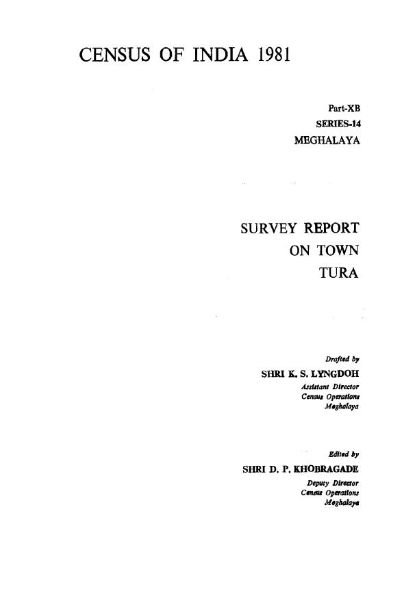 Survey Report on Town Tura, Part-XB, Series-14, Meghalaya - Census 1981
