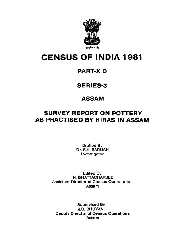 Survey Report on Pottery as Practiced by Hiras in Assam, Part X-D, Series-3, Assam - Census 1981