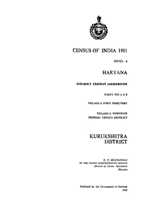 Village & Town wise Primary Census Abstract, Kurukshetra, Part XIII A & B, Series-6, Haryana - Census 1981