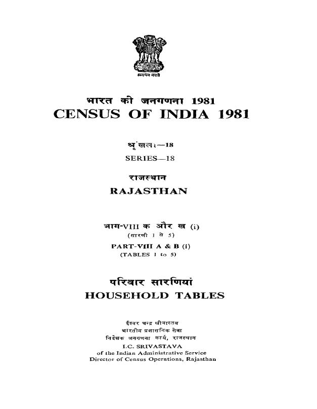 Household Tables, Part VIII A & B, Series-18, Rajasthan - Census 1981