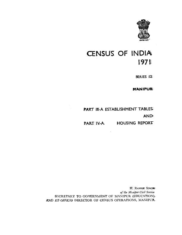 Establishment Table and Housing Report, Part IV-A, Series-12, Manipur - Census 1971