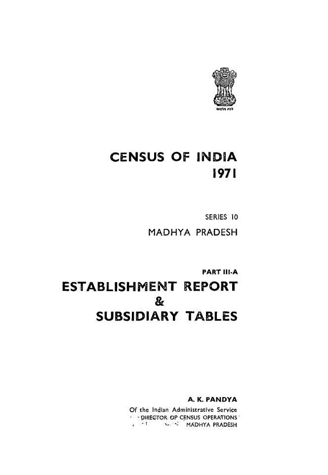 Establishment Report & Subsidiary Tables, Part III-A, Series-10 - Census 1971