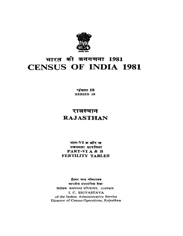 Fertility Tables, Part-VI A & B, Series-18, Rajasthan - Census 1981