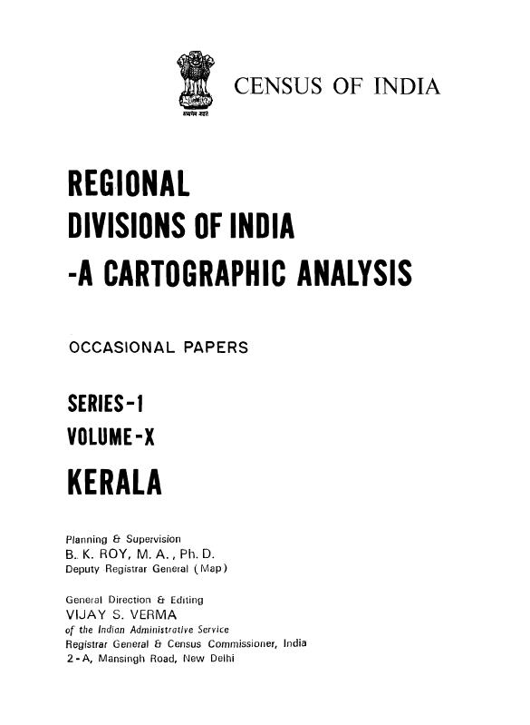 Regional Divisions of India A Cartographic Analysis, Vol-X, Series-1 - Census 1981