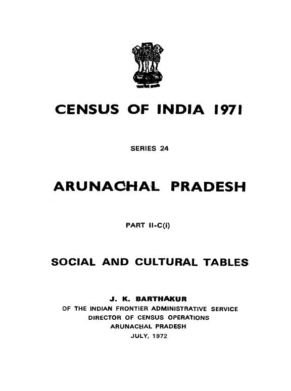 Social and Cultural Tables, Part II-C(i), Series-24, Arunachal Pradesh - Census 1971
