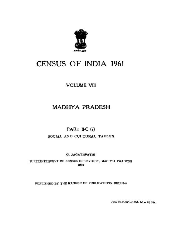 Social and Cultural Tables, Part II-C (i), Vol-VIII, Madhya Pradesh - Census 1961