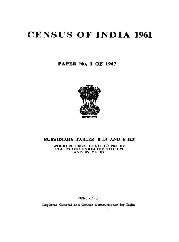 Subsidiary Tables, B-I-6 and B-II-3 - Census 1961