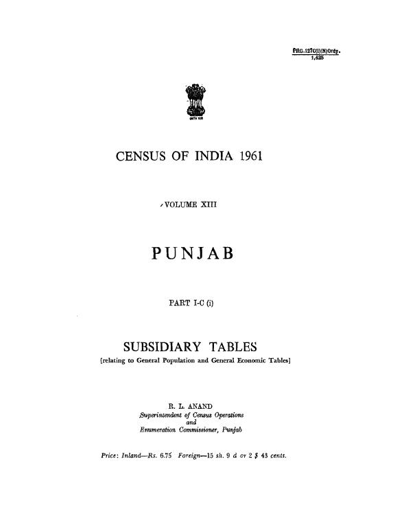 Subsidiary Tables, Part I-C (i), Vol-XIII, Punjab - Census 1961