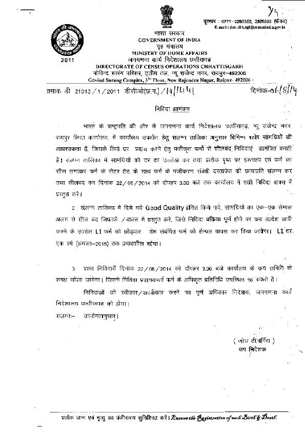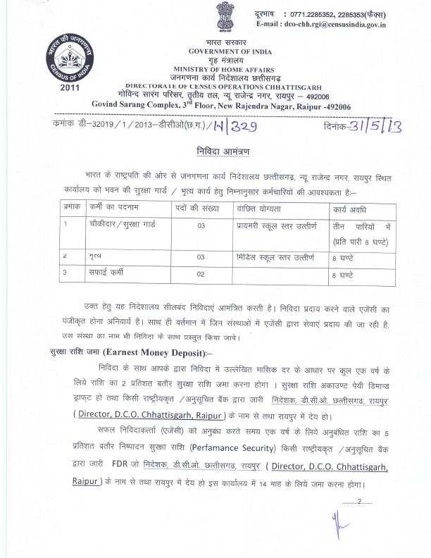 Tender for Security Guard / Peon [DCO- Chhattisgarh]