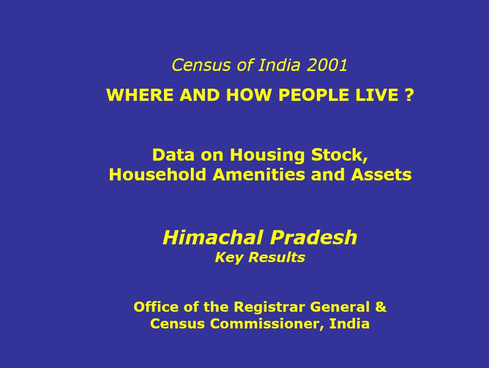 Census of India 2001 - Where and How People Live? Data on Housing Stock, Household Amenities and Assets - Himachal Pradesh Key Results