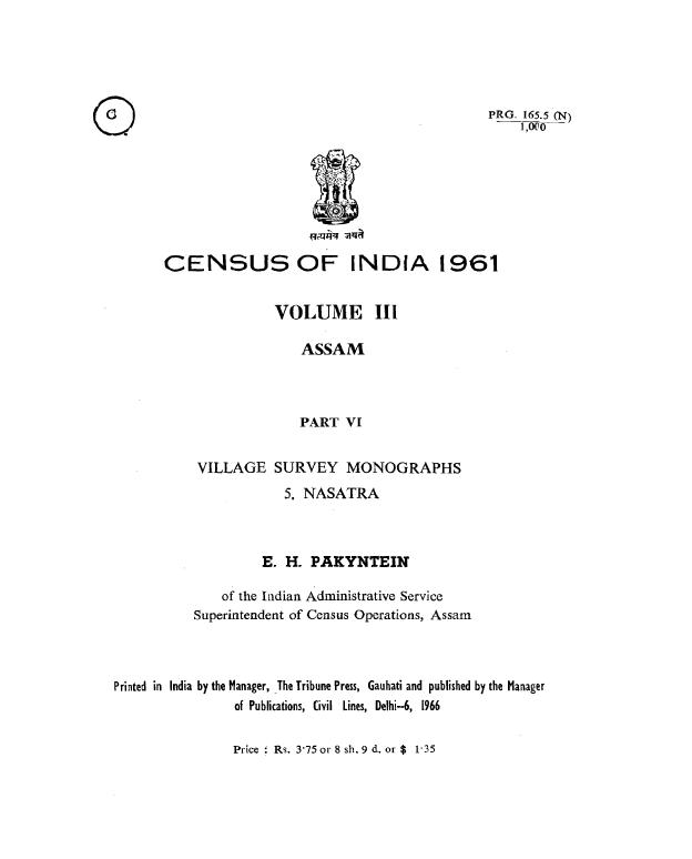 Village Survey Monographs, 5 Nasatra, Part VI, Vol-III, Assam - Census 1961