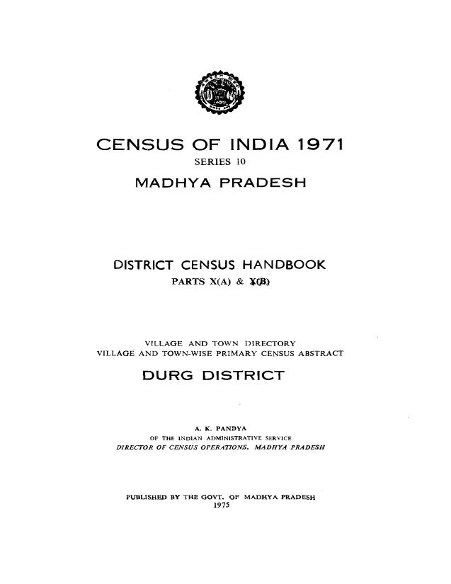 District Census Handbook, Durg, Parts X (A) & X (B), Series-10 - Census 1971
