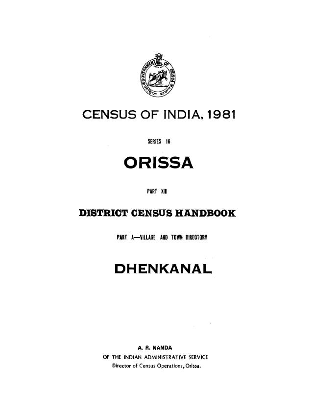 District Census Handbook, Dhenkanal Part-A, Series-16, Orissa - Census 1981