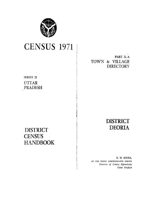 District Census Handbook, Deoria, Part X-A, Series-21, Uttar Pradesh - Census 1971