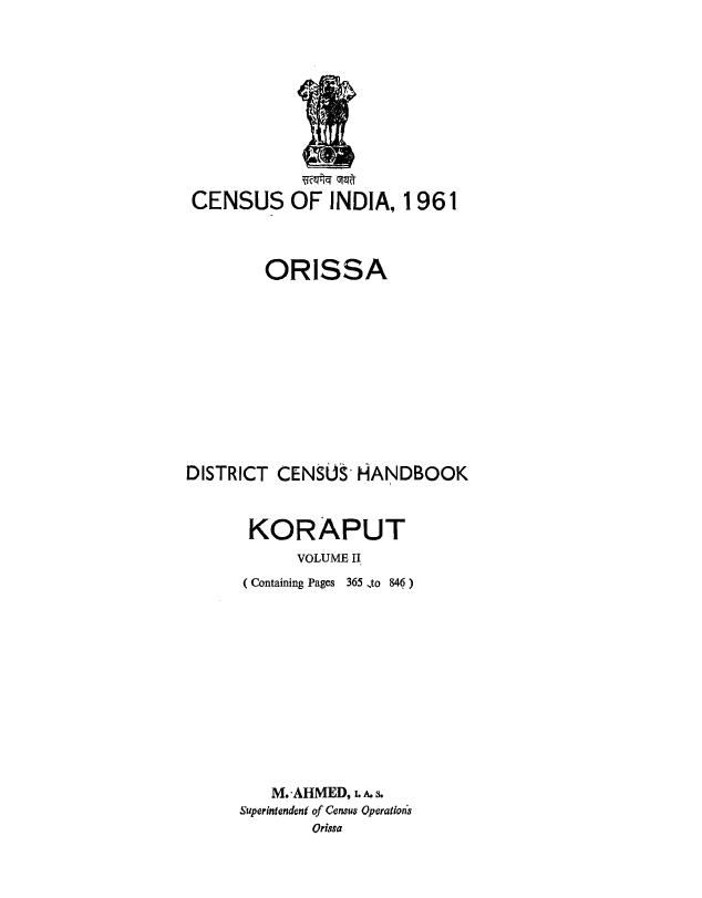 District Census Handbook, Koraput, Volume-II , Orissa - Census 1961