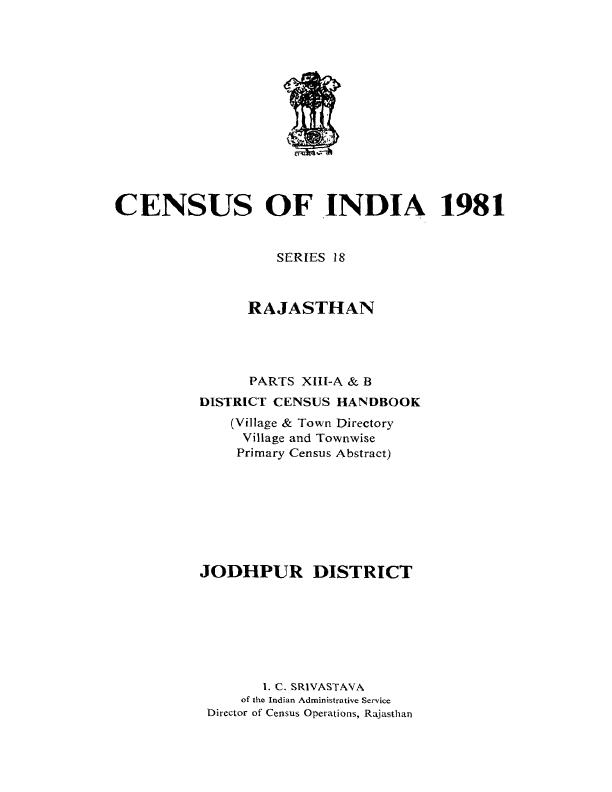 District Census Handbook, Jodhpur, Part XIII-A & B, Series-18, Rajasthan - Census 1981