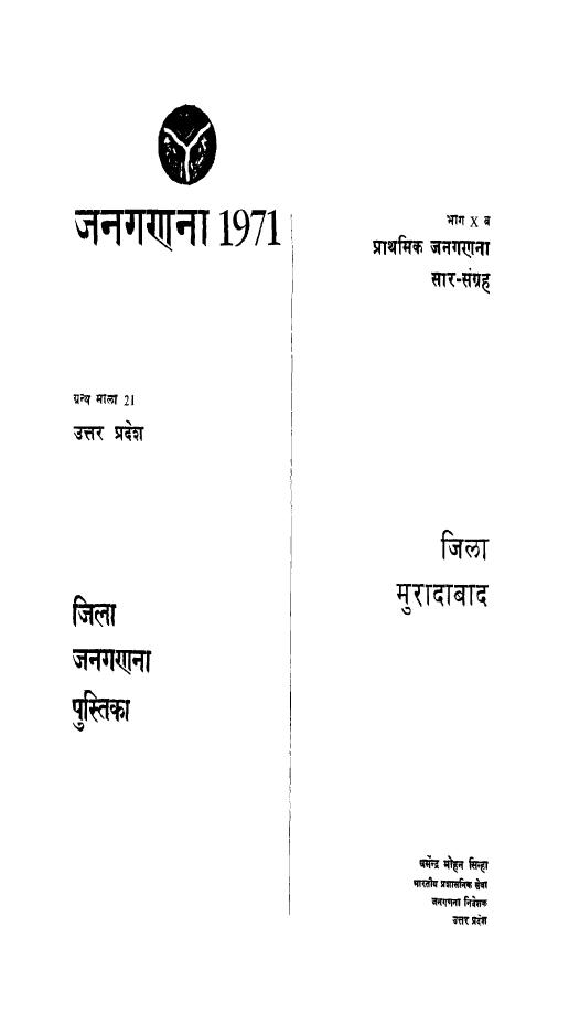 District Census Handbook, Moradabad, Part X-B, Series-21, Uttar Pradesh - Census 1971