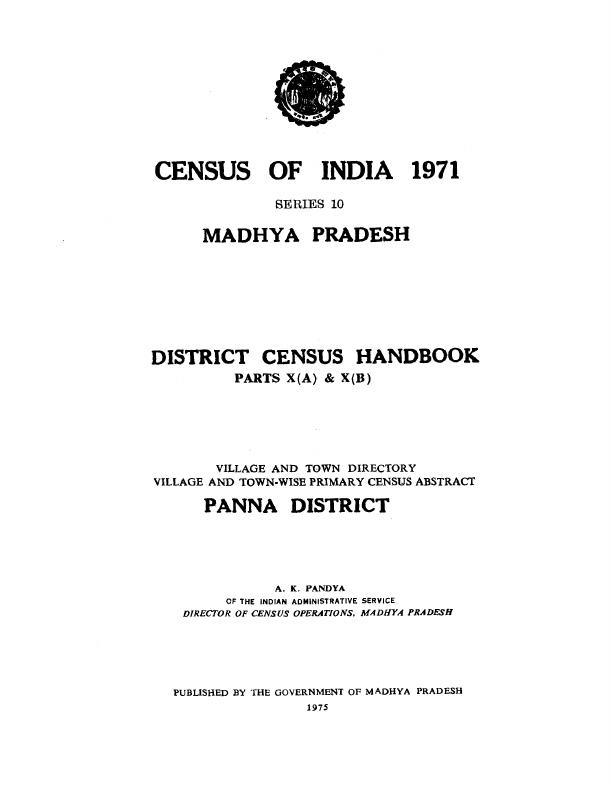 District Census Handbook, Panna, Part X (A) & X(B), Series-10 - Census 1971